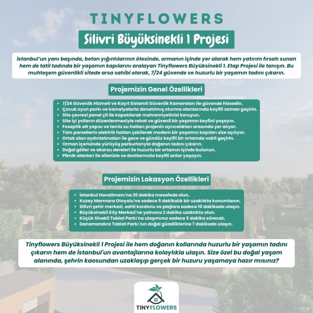 Günümüzün hızlı tempolu yaşamı, şehirlerin karmaşası ve gürültüsü, insanların doğaya olan özlemini her geçen gün arttırıyor. Bu özlemi karşılayan, insanları şehrin kaosundan uzaklaştırıp doğanın sakinliğine kucak açmaya davet eden "Tinyflowers Büyüksinekli-1 Etap 1 Doğal Yaşam Projesi," modern yaşamın getirdiği stres ve telaşın tam karşısında, 58 özel parselde unutulmaz bir yaşam sunuyor.